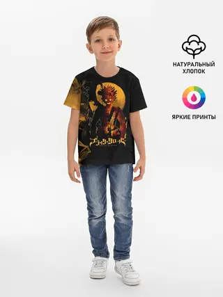 Детская базовая футболка / Чёрный клевер Аста желтая луна