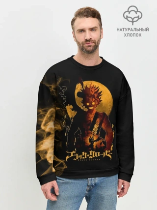 Мужской свитшот базовый / Чёрный клевер Аста желтая луна