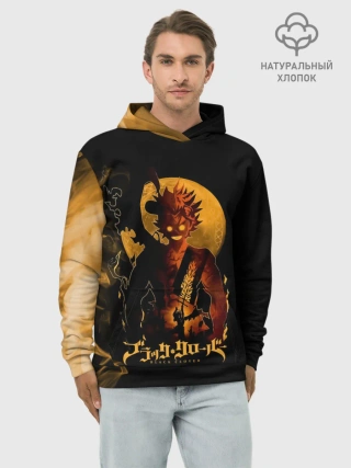 Худи мужской база хлопок / Чёрный клевер Аста желтая луна