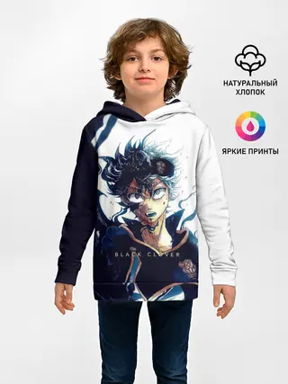 Худи мужской база хлопок / Черный Аста Чёрный клевер