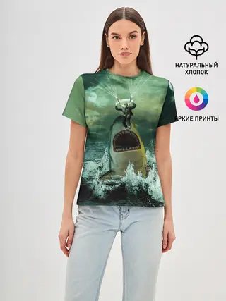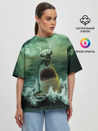Женская футболка оверсайз / Shark Attack | Акула атакует