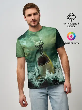 Мужская базовая футболка / Shark Attack | Акула атакует