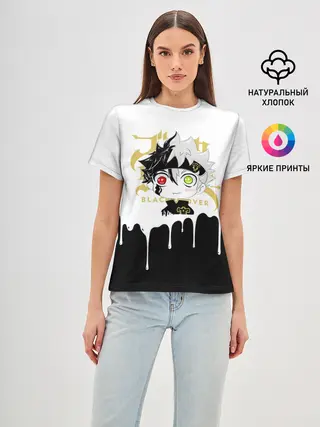 Женская базовая футболка / Черный Аста белая краска
