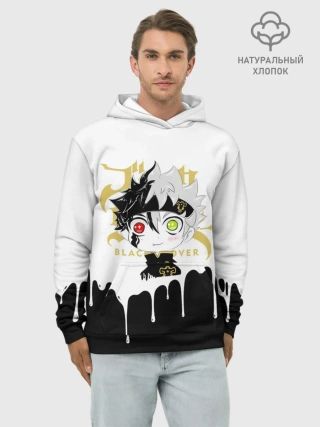 Худи мужской база хлопок / Черный Аста белая краска