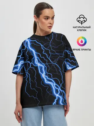 Женская футболка оверсайз / ГОЛУБАЯ МОЛНИЯ / ГРОЗА