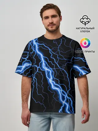 Мужская футболка оверсайз / ГОЛУБАЯ МОЛНИЯ / ГРОЗА