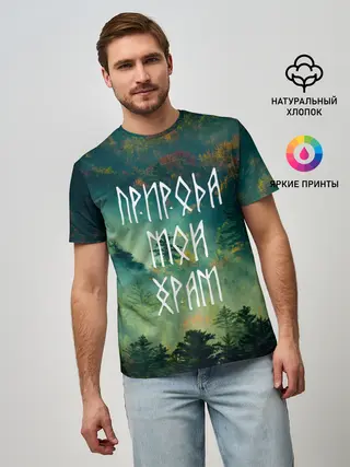Мужская базовая футболка / ПРИРОДА МОЙ ХРАМ