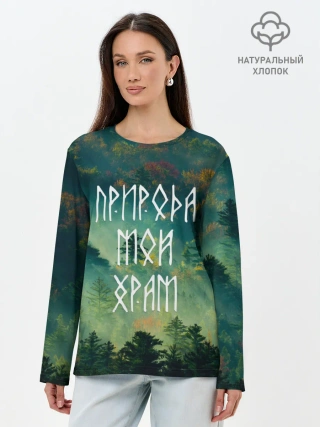 Лонгслив женский. Хлопок / ПРИРОДА МОЙ ХРАМ