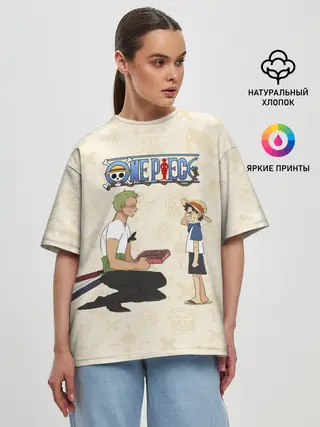 Женская футболка оверсайз / Ророноа Зоро и малыш Манки Д. Луффи