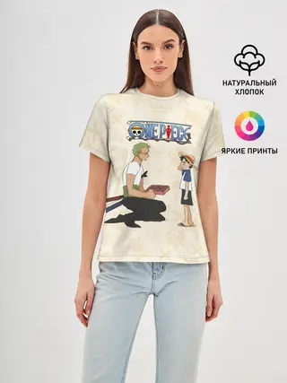 Женская базовая футболка / Ророноа Зоро и малыш Манки Д. Луффи
