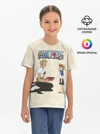 Детская базовая футболка / Ророноа Зоро и малыш Манки Д. Луффи