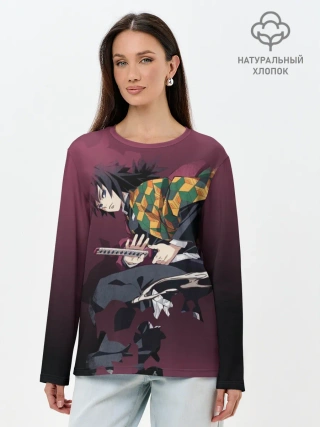 Лонгслив женский. Хлопок / Клинок, рассекающий демонов