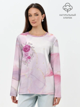 Лонгслив женский. Хлопок / Цветы роспись акварелью