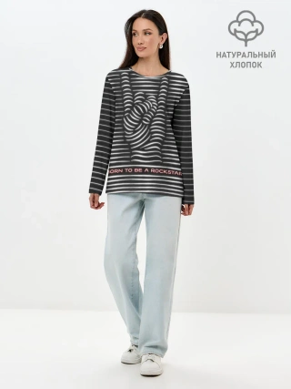 Лонгслив женский. Хлопок / Рождён быть Рок-Звездой