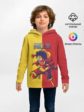 Худи мужской база хлопок / Удар Луффи | One Piece