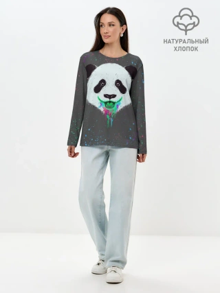 Лонгслив женский. Хлопок / Панда Краски Брызги