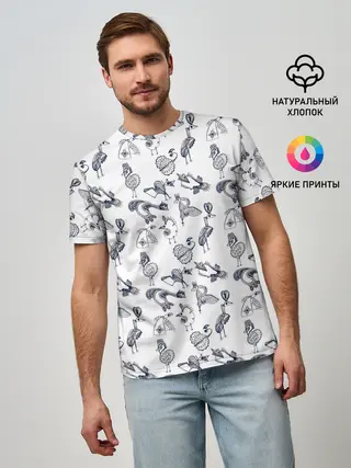 Мужская футболка оверсайз / Скетч сказочные птицы