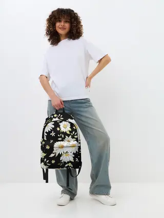 Рюкзак детский / Ромашки на черном фоне