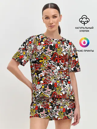 Женская пижама с шортами / Абстрактный разноцветный узор