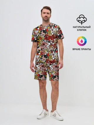 Мужской костюм с шортами / Абстрактный разноцветный узор