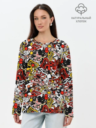 Лонгслив женский. Хлопок / Абстрактный разноцветный узор