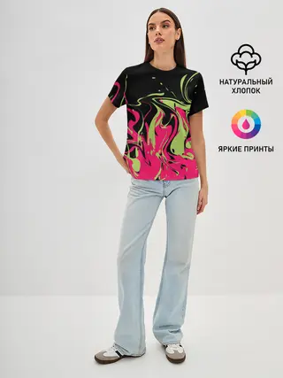 Женская футболка оверсайз / Черно малиновый абстрактный