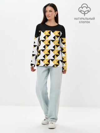Лонгслив женский. Хлопок / Черно-желтый геометрический