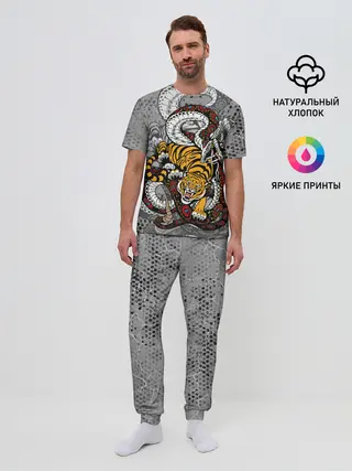 Мужская пижама с брюками / Змея и Тигр|Tiger Snake Fight