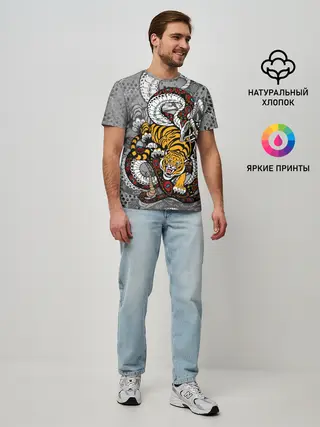 Мужская футболка оверсайз / Змея и Тигр|Tiger Snake Fight