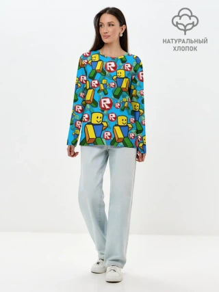 Лонгслив женский. Хлопок / ROBLOX / РОБЛОКС / NOOB / НУБ