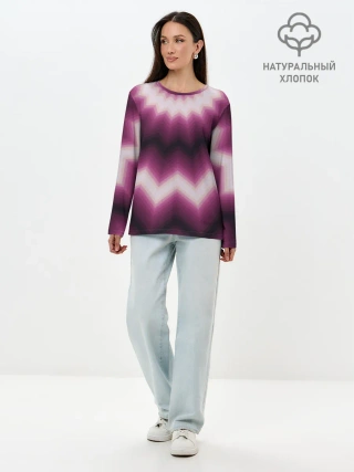 Лонгслив женский. Хлопок / Черно-пурпурный калейдоскоп