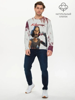 Мужской лонгслив базовый / КИАНУ РИВЗ | КИБЕРПАНК
