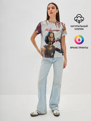 Женская базовая футболка / КИАНУ РИВЗ | КИБЕРПАНК