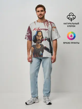 Мужская футболка оверсайз / КИАНУ РИВЗ | КИБЕРПАНК