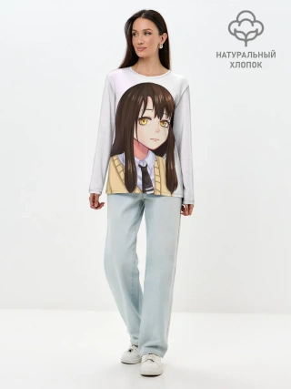 Лонгслив женский. Хлопок / Девочка, которая видит это Мико Ёцуя