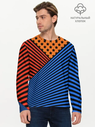 Мужской лонгслив базовый / Комбинированный полосатый узор