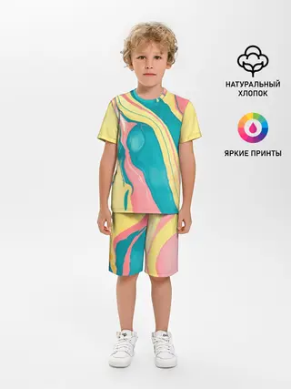 Детский лонгслив / Абстрактный желто-зеленый узор
