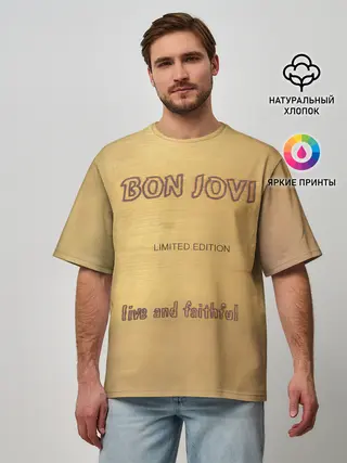 Мужская футболка оверсайз / Live and Faithful - Bon Jovi
