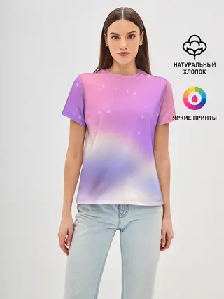 Женская базовая футболка / Звёздное небо розовый закат