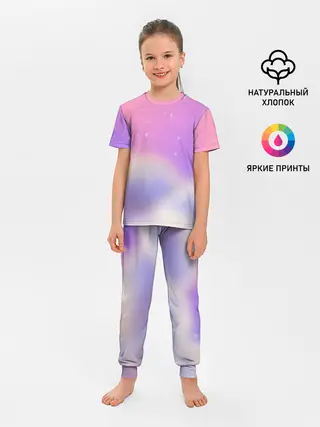 Детская пижама с брюками / Звёздное небо розовый закат