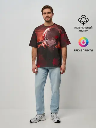 Мужская футболка оверсайз / Кадзуха в кленовых листьях