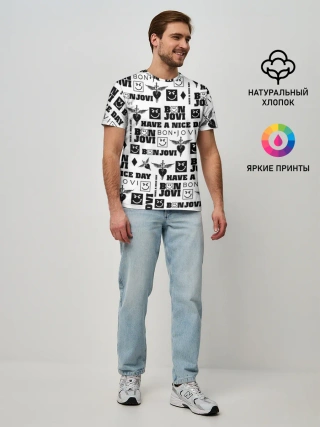 Мужская базовая футболка / BON JOVI ЛОГОБОМБИНГ | БОН ДЖОВИ ПАТТЕРН