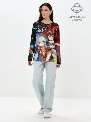 Лонгслив женский. Хлопок / Рэйзор и Эмбер, Genshin Impact