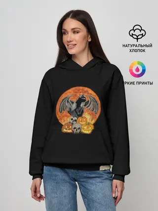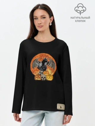 Лонгслив женский. Хлопок / Хэллоуинская кошка