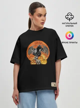 Мужская футболка оверсайз / Хэллоуинская кошка
