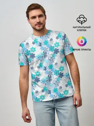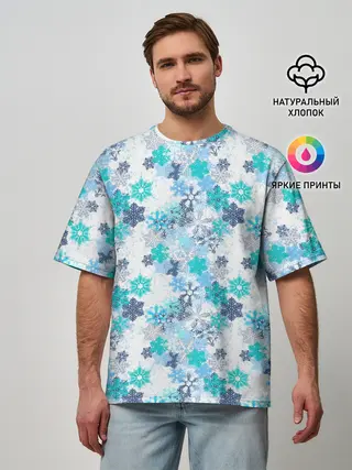Мужская футболка оверсайз / Зимние Снежные Узоры