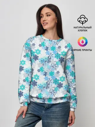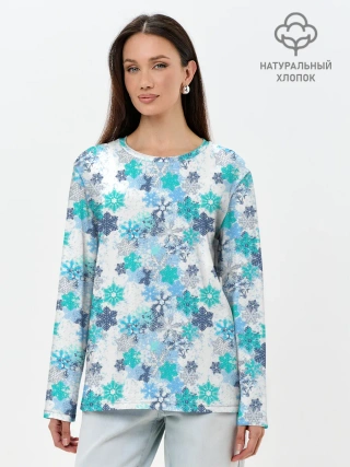 Лонгслив женский. Хлопок / Зимние Снежные Узоры
