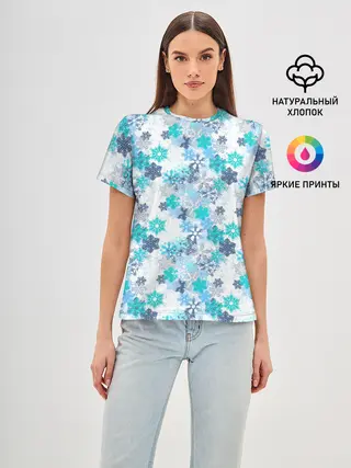 Женская футболка оверсайз / Зимние Снежные Узоры