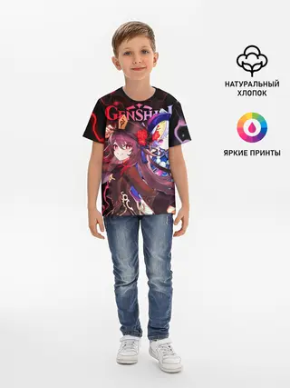 Детская базовая футболка / Ху Тао и Ци Ци, Genshin Impact