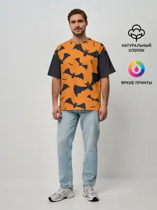 Мужская футболка оверсайз / ЛЕТУЧАЯ МЫШЬ В ДЕНЬ ХЭЛЛОУИНА